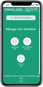The #CRWAD2026 app will be your all-in-one event guide, with everything you need right on your mobile device. Download it via the mobile app on the Apple App Store or Google Play. Once downloaded, enter “CRWAD2026” to access the meeting. If you previously used this app for a different conference, click “More” from the home screen, choose “Change Event,” then enter “CRWAD2026.”
